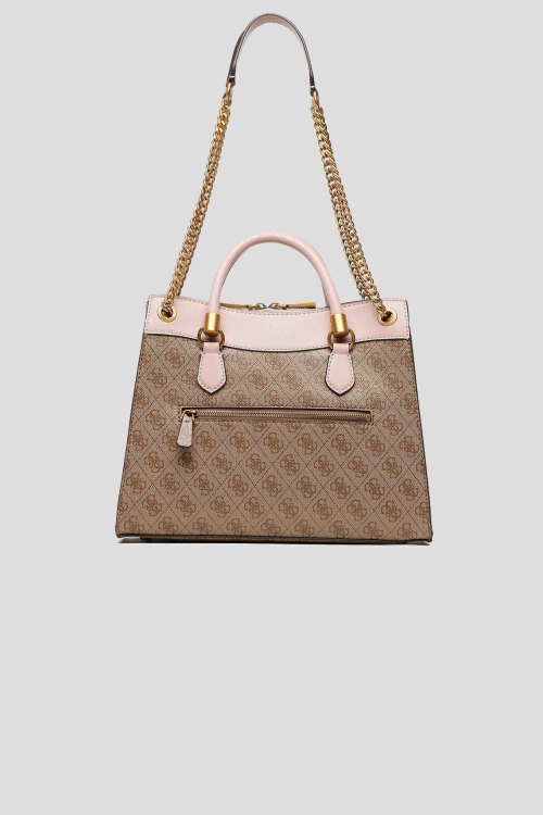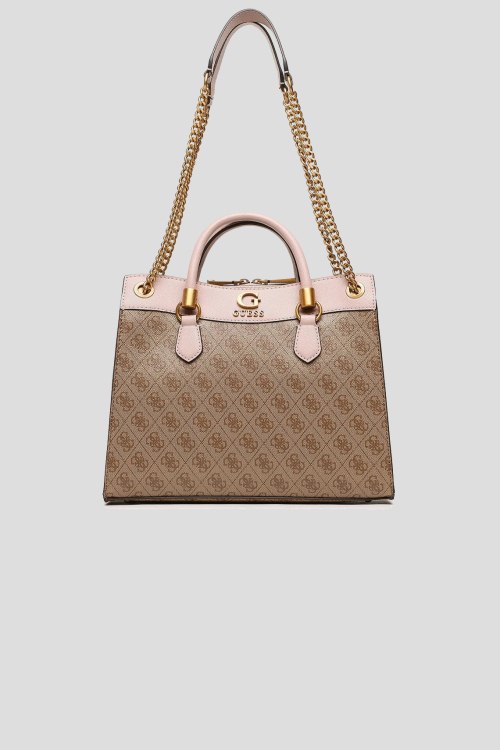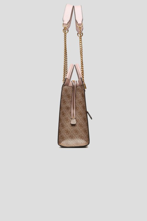 Детали: Женская светло-коричневая сумка-тоут из экокожи Nell Logo Girlfriend от Guess (Гесс). Монограмма бренда, значок с логотипом, золотистая фурнитура, две ручки, ремень-цепочка на плечо, застежка-молния, три отделение. Размер: 27,5/33X25,5X11,5 см. Высота ручки/ремня: 8,5 |33,5 см