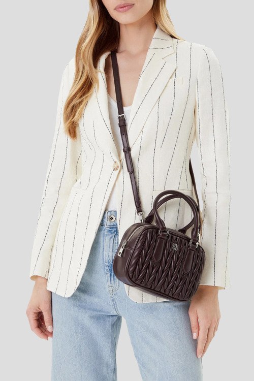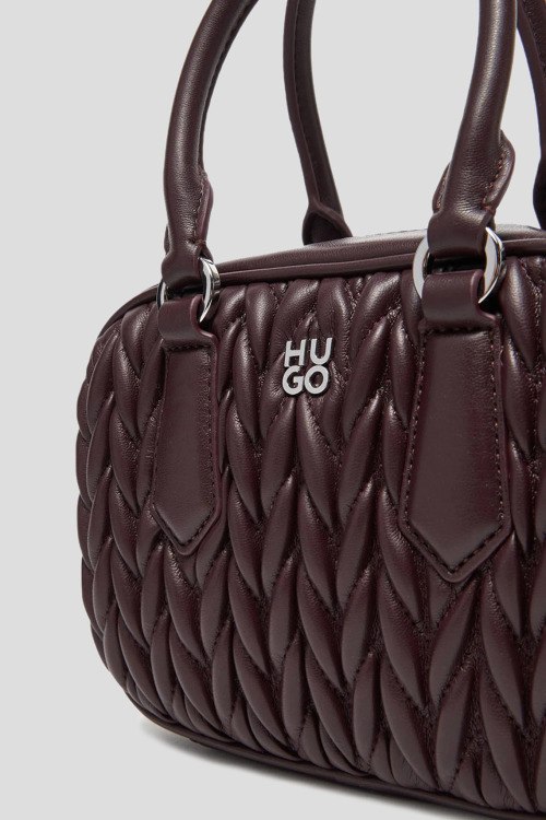 Детали: Женская темно-коричневая сумка-тоут из экокожи Chris от Hugo by Hugo Boss (Хуго бай Хуго Босс). Модель из гладкой кожи, плетеный узор, значок логотипа, серебристая фурнитура, застежка-молния, одно отделение, две круглые ручки, съемный плечевой ремень. Размеры: 20 х 15 х 6 см
