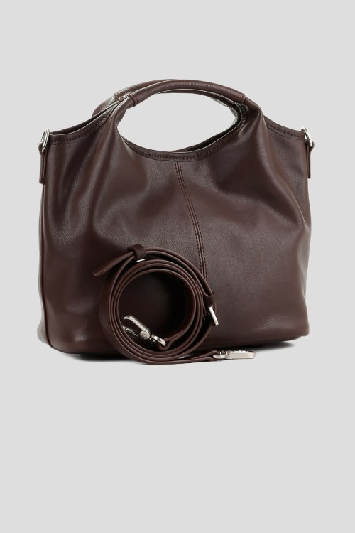 Детали: Женская темно-коричневая сумка-тоут из натуральной кожи от Le Berdes (Ле Бердес). Внутри одно отделение, два кармана. серебристая фурнитура, две верхние ручки, съемный плечевой ремень длиной 124 см. Размер: 23х17х11 см