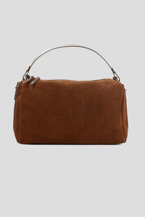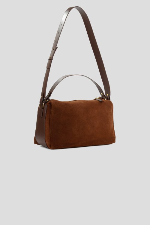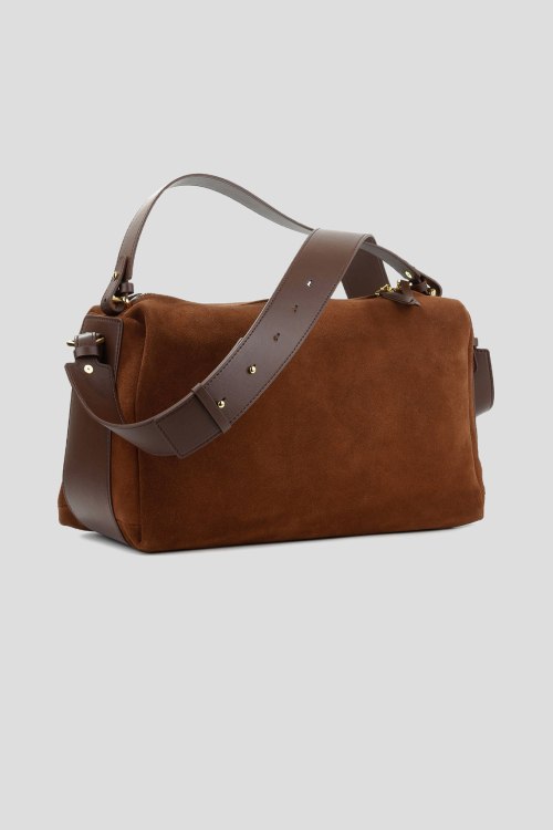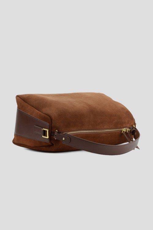 Детали: Женская коричневая сумка-тот из натуральной замши от Le Berdes (Ле Бердес). Комбинация материалов, внутри одно отделение и два кармана, застежка на молнию, подкладка из текстиля, верхняя ручка, длина плечевого ремня 97 см (регулируется). Размер: 34х20х14 см