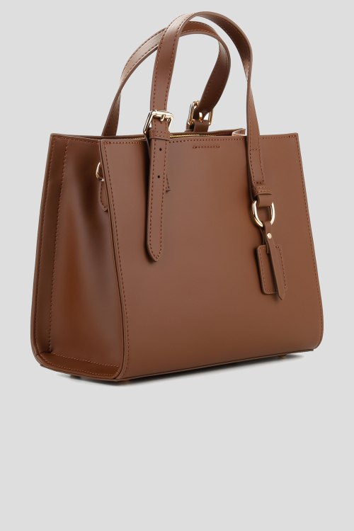 Детали: Женская коричневая кожаная сумка-тоут от Le Berdes (Ле Бердес). Модель из гладкой кожи, золотистая фурнитура, два плечевых ремня, застежка-молния, одно отделение. Размеры: 26 х 21 х 11 см