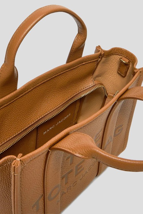 Детали: Женская коричневая сумка-тоут Small Tote Bag из натуральной кожи от Marc Jacobs (Марк Джейкобс). Одно отделение, застежка на молнию, дизайн с тиснением в виде логотипа бренда, две верхние ручки, съемный плечевой ремень. Измерения: 26 x 21 x 13 см