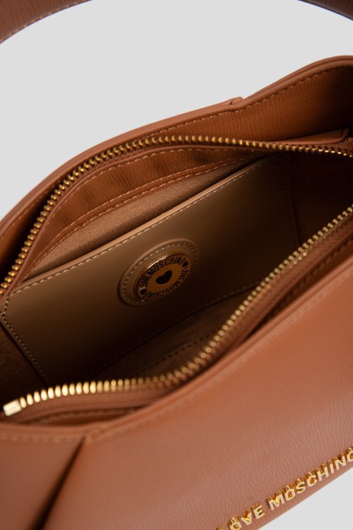 Детали: Женская коричневая сумка-тоут из экокожи от Love Moschino (Лав Москино). Одно отделение, застежка на молнию, внутренний карман, верхняя ручка, металлический логотип бренда, регулируемый плечевой ремень. Измерения: 26х16х10 см, высота ручки 16 см