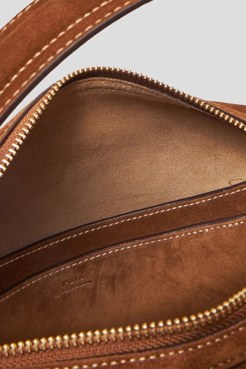 Детали: Женская коричневая замшевая сумка-тоут от Polo Ralph Lauren (Поло Ральф Лорен). Одно отделение, застежка на молнию, верхняя ручка, внутренний карман. Размер: 28 x 24 x 16 см