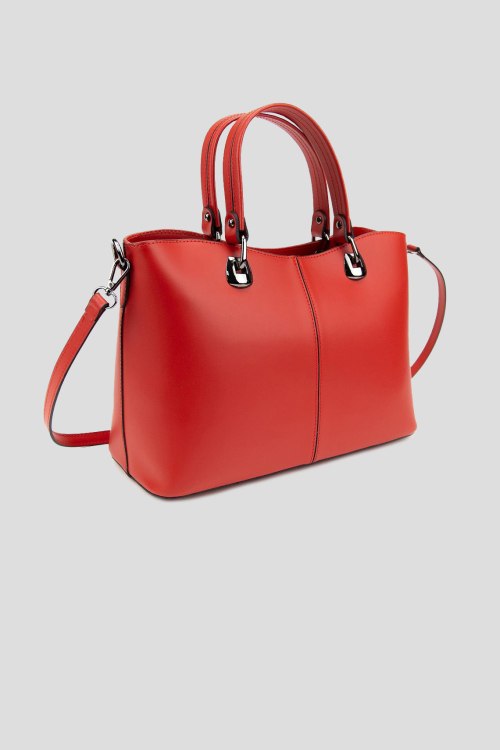 Детали: Женская красная сумка-тоут из натуральной кожи от Firenze Italy (Фирензе Итали). Каркасная модель, одно отделение, застежка на молнию, внутренний карман, верхние ручки, съемный плечевой ремень. Размер: 35 x 14 x 24см.