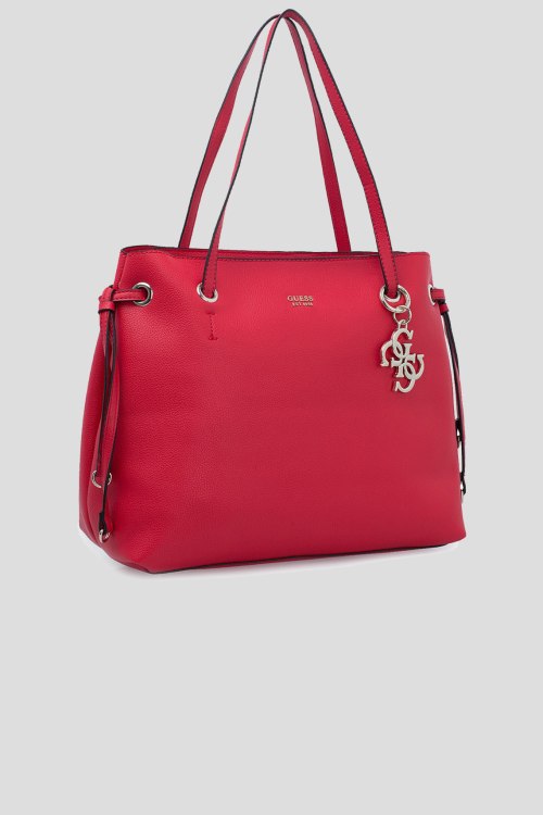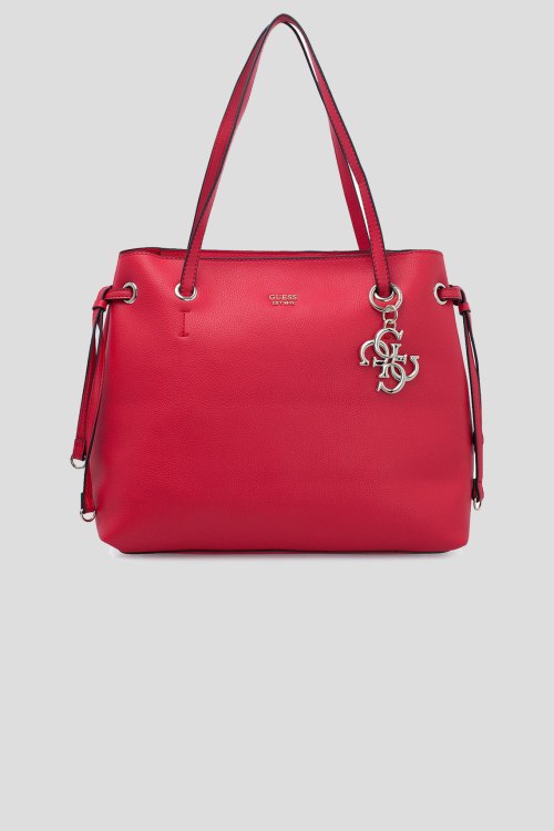 Детали: Женская красная сумка-тоут из экокожи от Guess (Гесс). Одно большое отделение, внутри дополнительный карман без молнии, снаружи: на задней стенке карман на молнии, фурнитура золотистого цвета, металлический брелок, металлический логотип бренда золотистого цвета. Измерения: 39x31x16