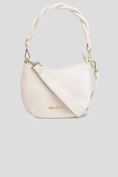 Детали: Женская кожаная сумка-тоут молочного оттенка от Baldinini (Балдинини). Модель из зернистой кожи, логотип спереди, золотистая фурнитура, круглая плетеная ручка, съемный плечевой ремень, застежка-молния, одно отделение