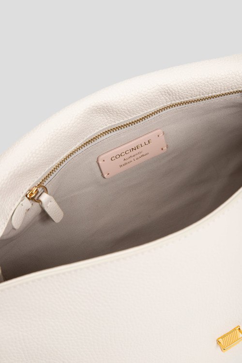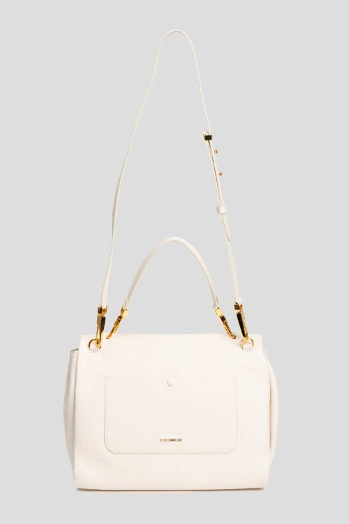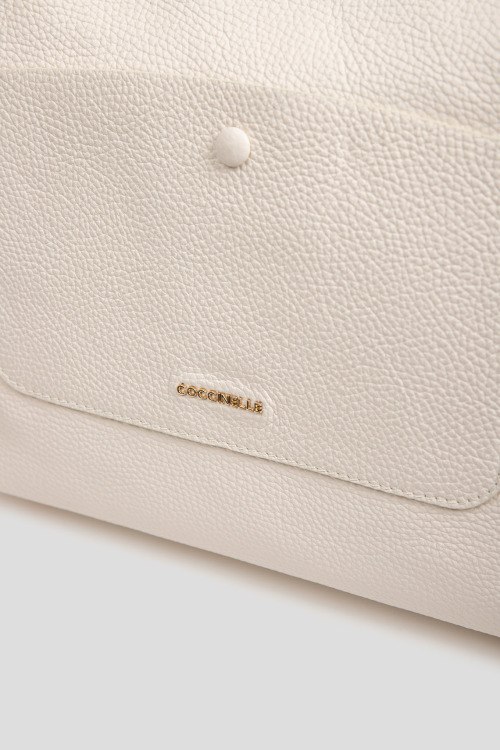 Детали: Женская сумка-тоут молочного оттенка из натуральной кожи от Coccinelle (Кочинелле). Дизайн с клапаном, металлическая фурнитура золотистого цвета, верхняя ручка, съемный плечевой ремень, внутренний карман на молнии. Измерения: ширина: 32 см, высота: 24 см, глубина: 13 см
