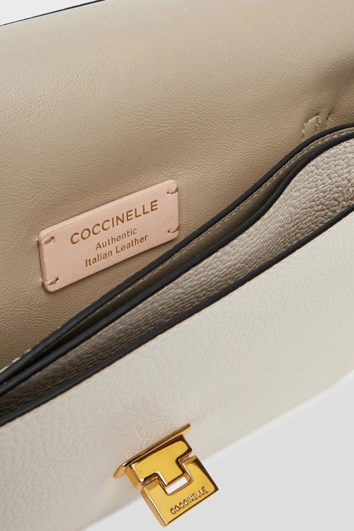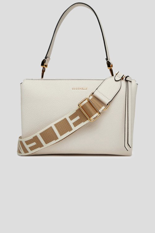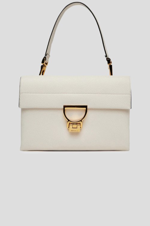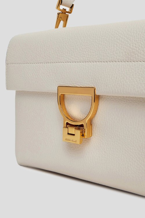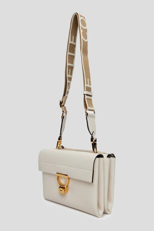 Детали: Женская кожаная сумка-тоут молочного оттенка Arlettis от Coccinelle (Кочинелле). Модель из зернистой кожи, золотистая фурнитура, верхняя ручка, съемный брендированный плечевой ремень, застежка на защелку, одно отделение. Размеры: 25.5 x 18 x 9.5 см