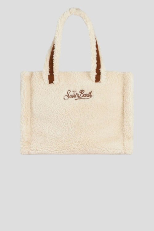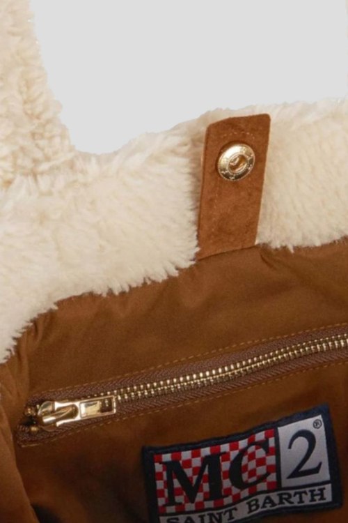 Детали: Женская сумка-тоут молочного оттенка от Mc2 Saint Barth (Mc2 Сент Барт). Модель из ткани тэдди, логотип спереди, две ручки, застежка на магнит, одно отделение. Размеры: 36 x 29 x 16 см