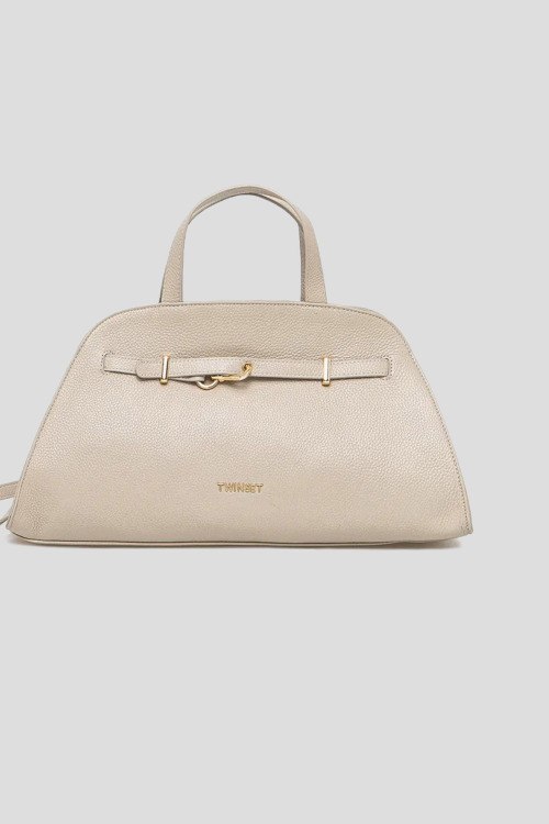 Детали: Женская кремовая сумка-тоут из экокожи от TWINSET (Твинсет). Модель из зернистой кожи, логотип спереди, золотистая фурнитура, две круглые ручки, съемный плечевой ремень, застежка-молния, одно отделение. Размеры: 39 х 23 х 15 см