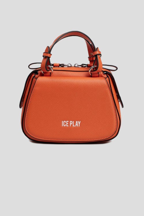 Детали: Женская оранжевая сумка-тоут из экокожи от Ice Play (Айс Плей). Принт с логотипом, серебристая фурнитура, накладной карман спереди, две круглые ручки, съемный плечевой ремень, застежка-молния, одно отделение. Размеры: высота: 18 см, ширина: 22 см, ширина дна: 8 см