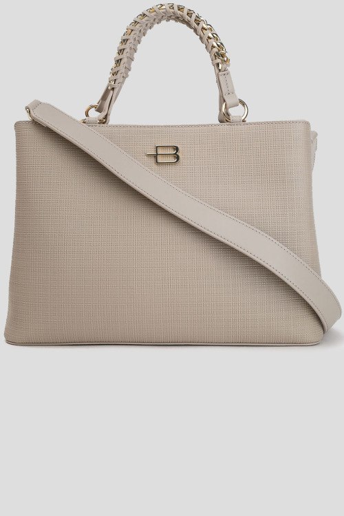 Детали: Женская серая кожаная сумка-тоут от Baldinini (Балдинини). Значок с логотипом, золотистая фурнитура, две круглые ручки декорированы цепочкой, съемный плечевой ремень, застежка на магнит, несколько внутренних отделений