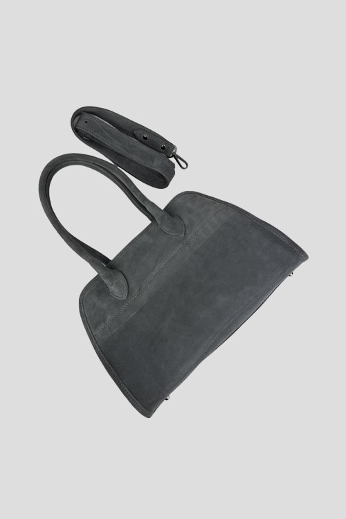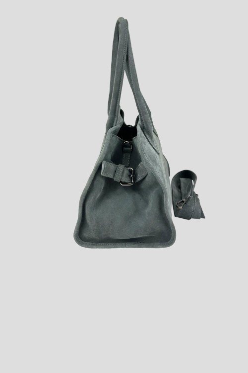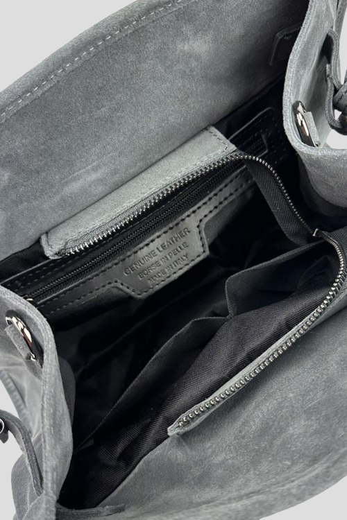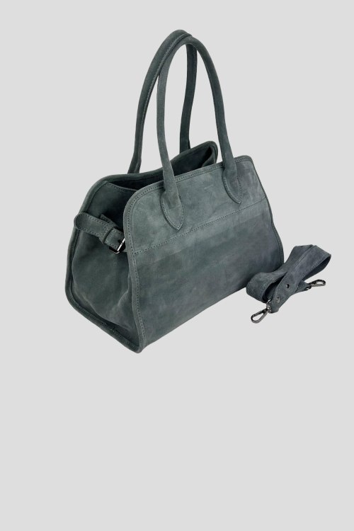 Детали: Женская темно-серая сумка-тоут из натуральной замши от Firenze Italy (Фирензе Итали). Одно отделение, застежка на молнию, внутренние карманы, две верхние ручки, съемный плечевой ремень. Размер: 31(28) x 21 x 14 см