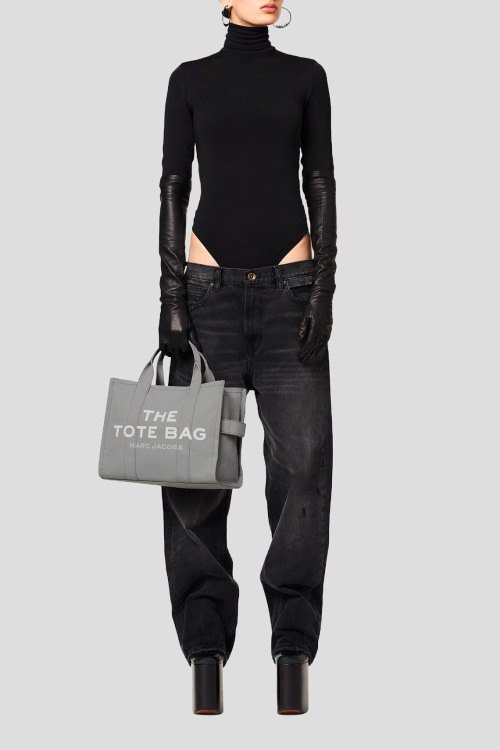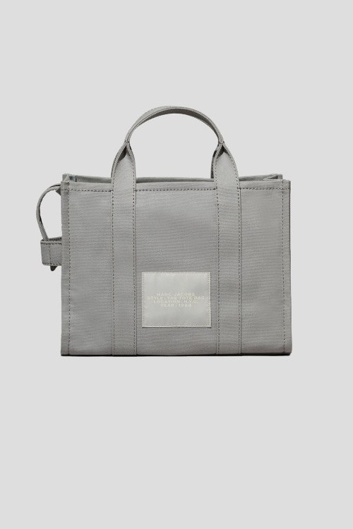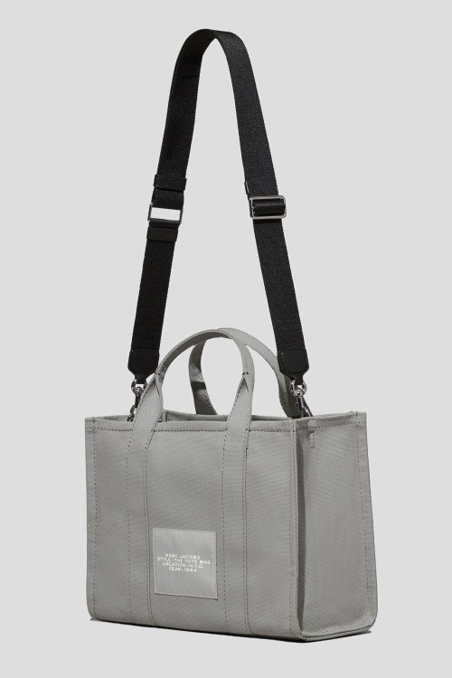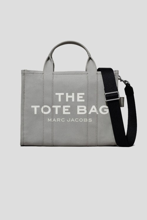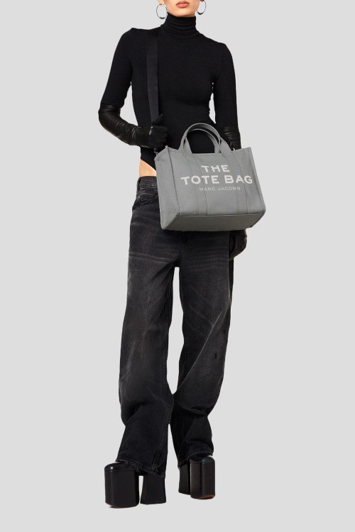 Детали: Женская серая сумка-тоут из канвы The Canvas Medium от Marc Jacobs (Марк Джейкобс). Принт с логотипом спереди, нашивка с логотипом сзади, две круглые ручки, съемный плечевой ремень, серебристая фурнитура, застежка-молния, одно отделение, один внутренний карман. Размеры: 27 x 33 x 15 см