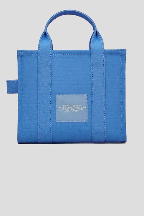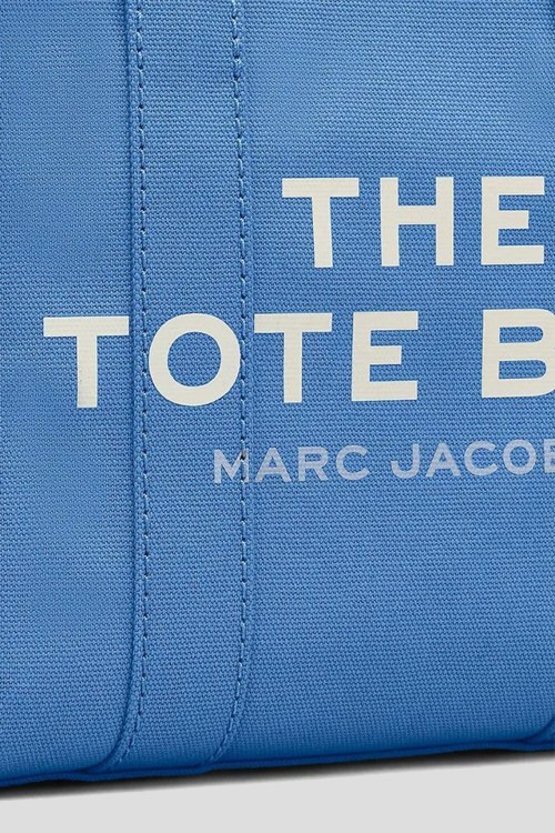 Детали: Женская синяя текстильная сумка-тоут The Canvas Small Tote Bag от Marc Jacobs (Марк Джейкобс). Принт логотипа, серебристая фурнитура, две круглые ручки, съемный плечевой ремень, застежка-молния, одно отделение. Размеры: 26 x 13 х 21 см