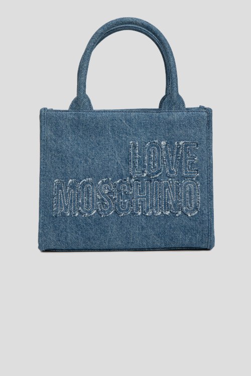 Детали: Женская синяя джинсовая сума-тоут от Love Moschino (Лав Москино). Одно отделение, застежка на молнию, внутренний карман на молнии, две верхние ручки, съемный плечевой ремень, вышитый логотип бренда. Размер: глубина: 15 см, высота: 22 см, ширина у основания: 26,5 см.