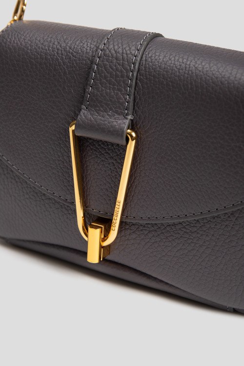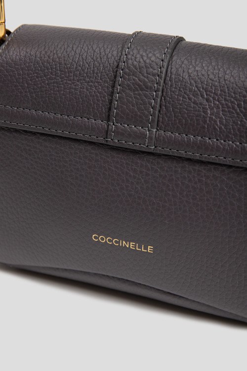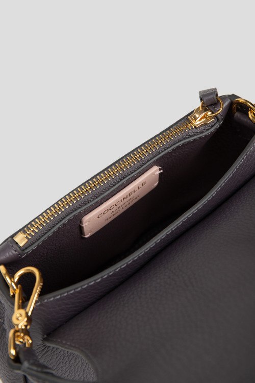 Детали: Женская темно-серая сумка-тоут из натуральной кожи от Coccinelle (Кочинелле). Дизайн с клапаном, металлическая фурнитура золотистого цвета, верхняя ручка, съемный плечевой ремень, внутренний карман на молнии Измерения: ширина: 21 см, высота: 12 см, глубина: 4,5 см
