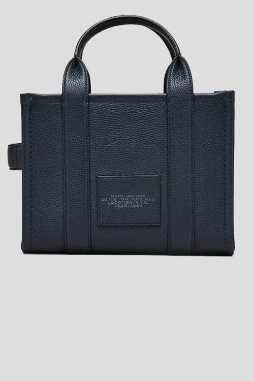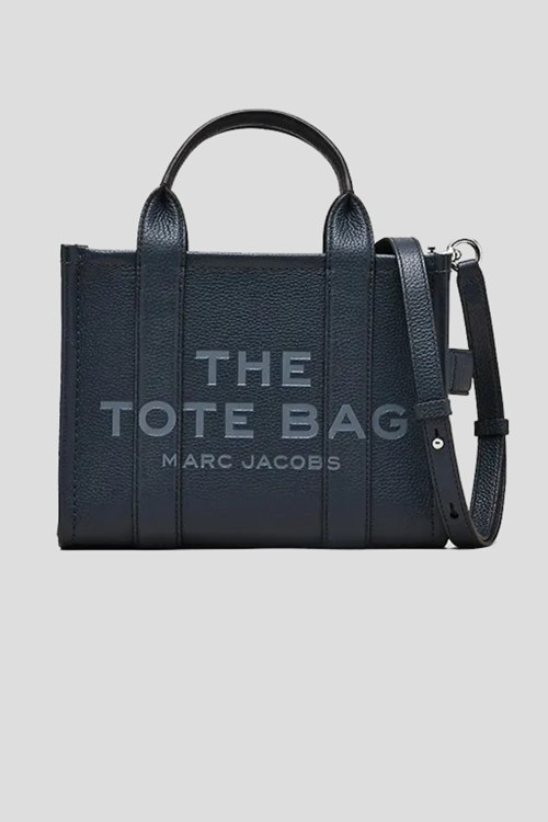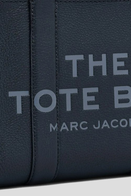 Детали: Женская темно-синяя кожаная сумка-тоут The Leather Small Tote Bag от Marc Jacobs (Марк Джейкобс). Модель из зернистой кожи, тиснение логотипа, серебристая фурнитура, две круглые ручки, съемный плечевой ремень, застежка-молния, одно отделение. Размеры: 26 x 13 х 21 см