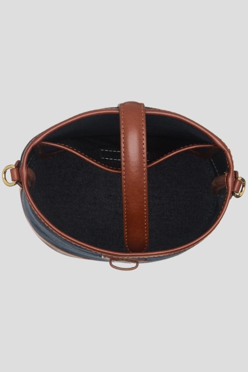 Детали: Женская темно-синяя джинсовая сумка-ведро Domizia от Max Mara Weekend (Макс Мара Викенд). Кожаная отделка, золотистая фурнитура, одно отделение, регулируемый плечевой ремень. Размеры: 20 x 13 x 21 см