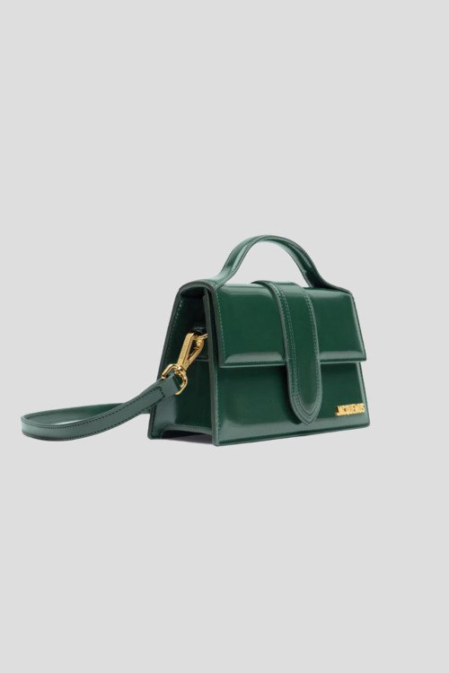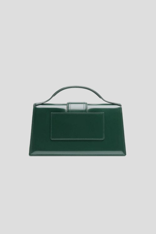 Детали: Женская темно-зеленая сумка-тоут Le Grand Bambino из натуральной кожи от Jacquemus (Жакмюс). Одно отделение, застежка с клапаном на магнит, верхняя ручка, съемный плечевой ремень с регулировкой. Измерения: 23,5 см x 13 см