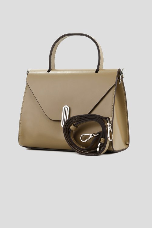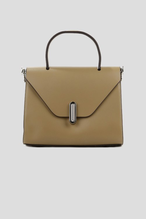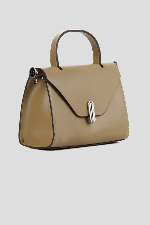 Детали: Женская оливковая кожаная сумка-сэтчел от Le Berdes (Ле Бердес). Модель из гладкой кожи, серебристая фурнитура, круглая ручка, съемный плечевой ремень, застежка на защелку и молнию, внутри одно основное отделение, два внутренних кармана, подкладка из текстиля. Длина плечевого ремня: 118 см (регулируется). Размеры: 22 х 19 х 10 см