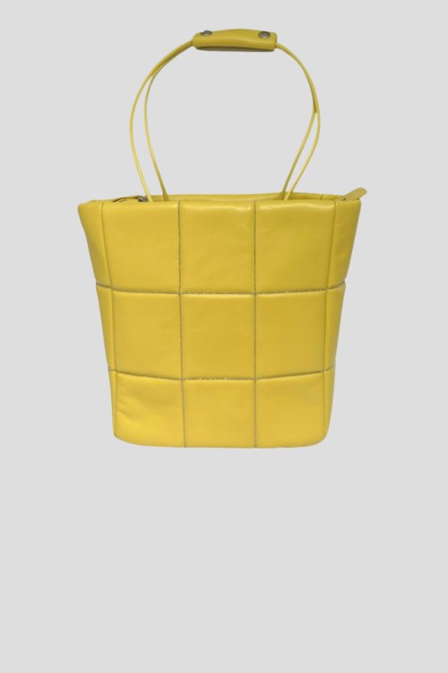 Детали: Женская желтая кожаная сумка-тоут от Fabiana Filippi (Фабиана Филиппи). Модель из гладкой кожи, стеганый дизайн, две круглые ручки, застежка-молния, одно отделение. Размеры: ширина 11 см, длина 24 см, высота 28 см