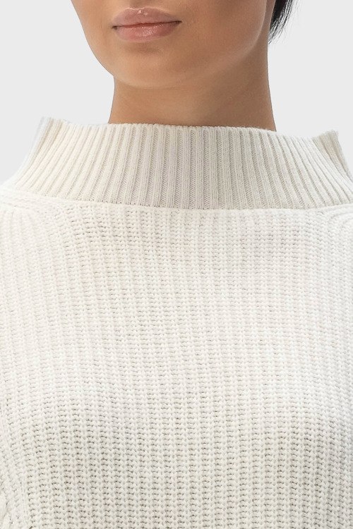 Детали: Женский белый шерстяной свитер от Max Mara Weekend (Макс Мара Викенд). Комбинированная вязка, широкий воротник-стойка, разрезы по бокам, спущенная линия плеча, классическая длина