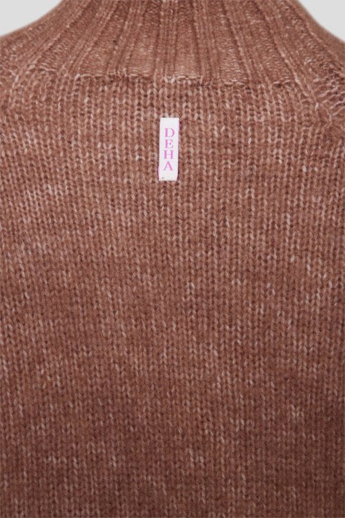 Детали: Женский коричневый свитер из мохера и акрила от Deha (Деха). Модель с примесью шерсти, классическая вязка, воротник-стойка, классическая длина. Замеры: длина рукава: длинный, для размера S - 74 см, обхват груди: для размера S - 120 см, обхват талии: для размера S - 116 см, длина изделия по среднему шву спинки от горловины: для размера S - 52 см