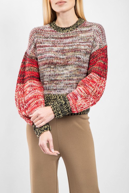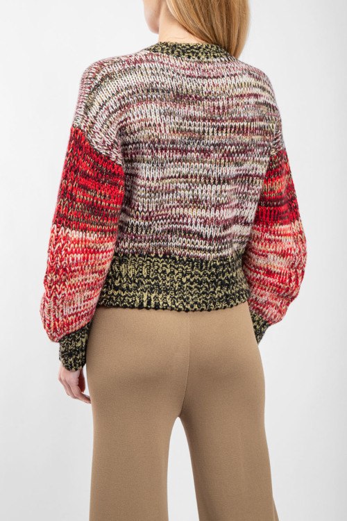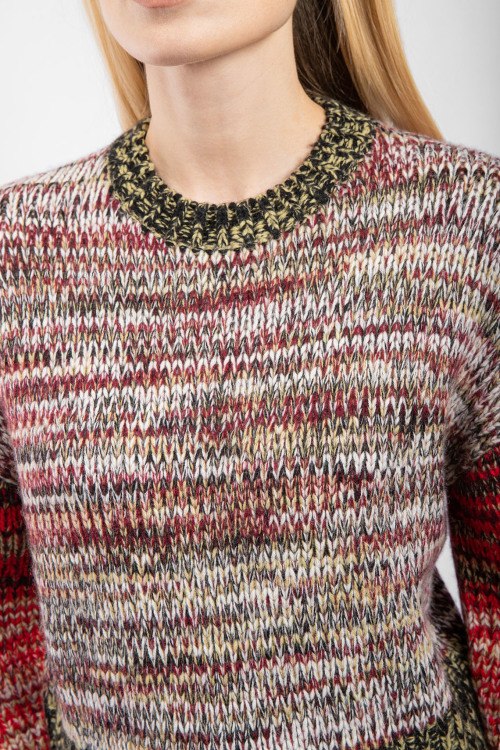 Мужской коричневый шерстяной свитер от Loewe (Лоэйве). Многоцветная нить, кругпная вязка, круглый вырез горловины, спущенная линия плеча, объемный рукав, классическая длина.