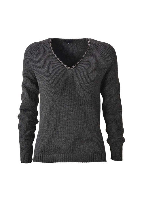 Детали: Однотонный свитер с V-образным вырезом и фирменной фурнитурой