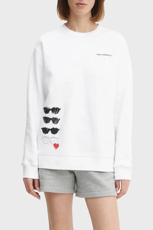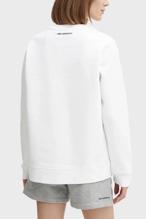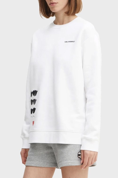 Детали: Женский белый свитшот из хлопкового микса от Karl Lagerfeld (Карл Лагерфельд). Модель Relaxed Fit, круглый вырез горловины, длинные рукава, логотип бренда, графический принт