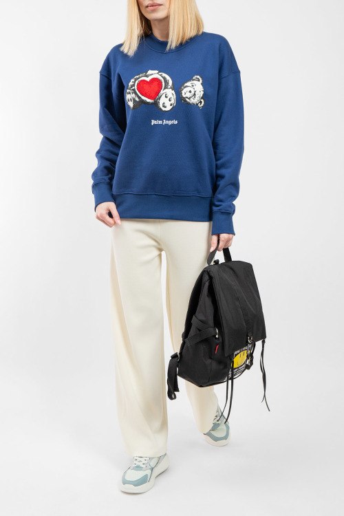 Женский синий хлопковый свитшот от Palm Angels (Палм Энджелс). Принт с логотипом на груди, круглый вырез горловины, классическая длина, трикотажные манжеты и нижний край.
