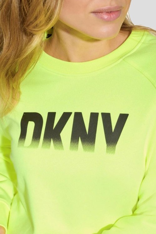 Детали: Женский желтый хлопковый свитшот от Donna Karan (Донна Каран). Принт с логотипом на груди, круглый вырез горловины, классическая длина, трикотажные манжеты и нижний край