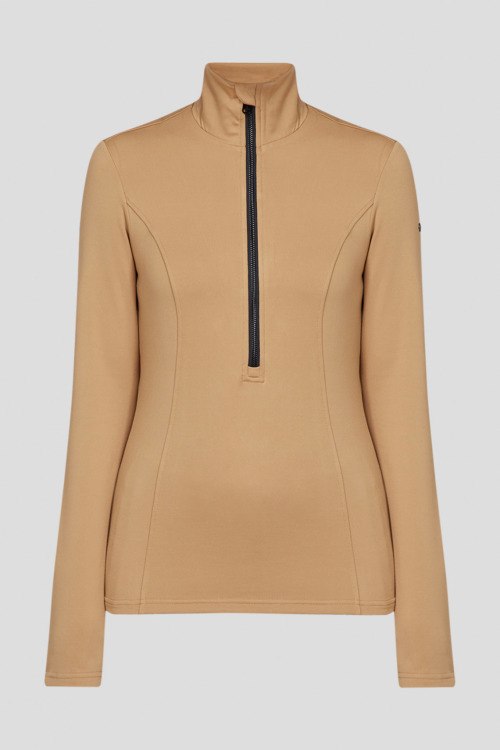 Женская бежевая спортивная кофта из полиэстера и эластана от Goldbergh (Голдберг). Полуприталенный фасон, высокий воротник, спереди застежка-молния, на плече логотип бренда. Измерения: длина рукава: длинный, для размера S – 66 см, обхват груди: для размера S – 88 см, обхват талии: для размера S – 76 см, длина изделия по среднему шву спинки от горловины: для размера S – 63 см