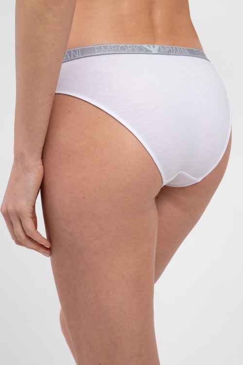 Женские белые трусики из хлопкового микса от EA7 Emporio Armani (ЕА7 Эмпорио Армани). Средняя посадка, модель слипы, эластичная брендированная резинка на поясе.