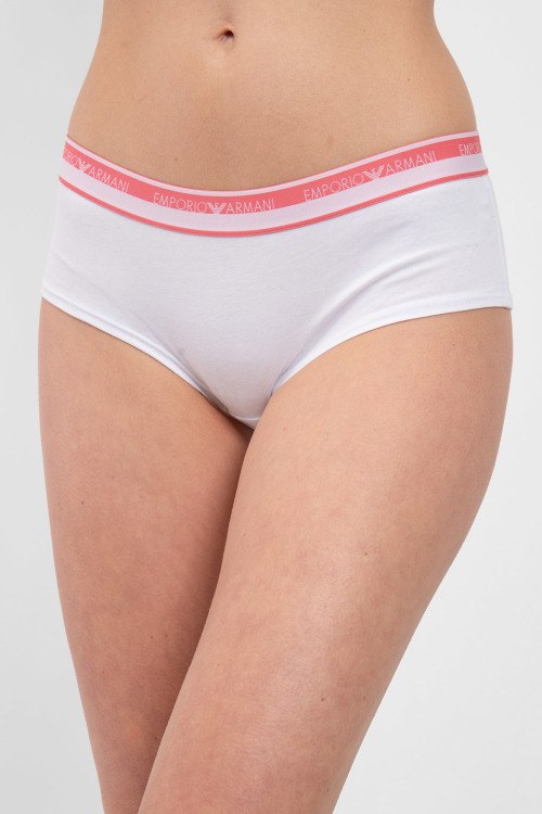 Женские белые трусики-хипстеры из хлопкового микса от EA7 Emporio Armani (ЕА7 Эмпорио Армани). Средняя посадка, эластичная резина с логотипом бренда.
