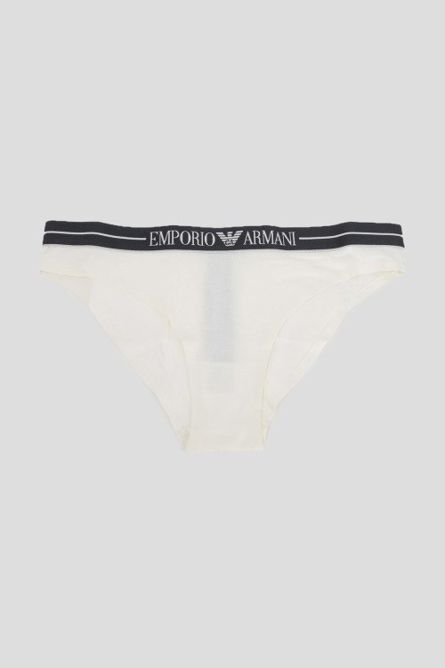 Детали: Женский набор белых хлопковых трусиков от Emporio Armani (Эмпорио Армани). Фасон-слипы, эластичный брендированный пояс. В наборе 2 пары