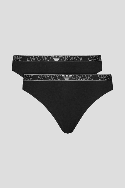 Детали: Женский черный комплект хлопковых трусиков от Emporio Armani (Эмпорио Армани). Фасон-бразилианы, эластичная резинка с логотипом