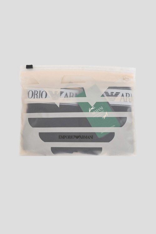 Детали: Женский набор черных хлопковых трусиков от Emporio Armani (Эмпорио Армани). Фасон-слипы, эластичный брендированный пояс. В наборе 2 пары