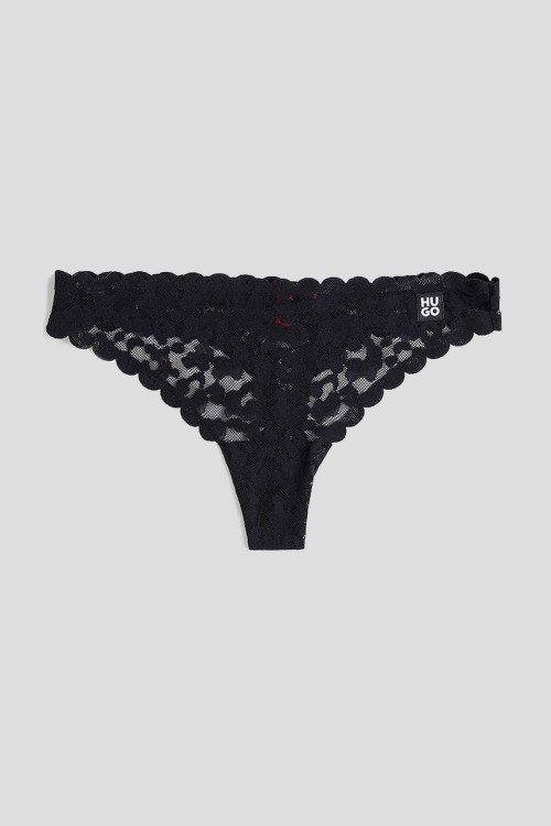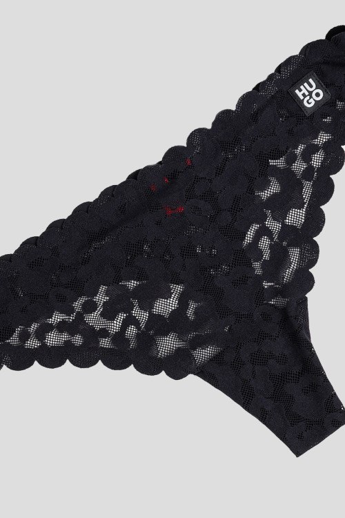 Детали: Женские черные трусики Leo от Hugo by Hugo Boss (Хуго бай Хуго Босс). Кружевной дизайн леопардовый узор, фасон-стринги
