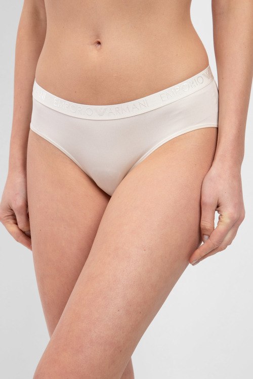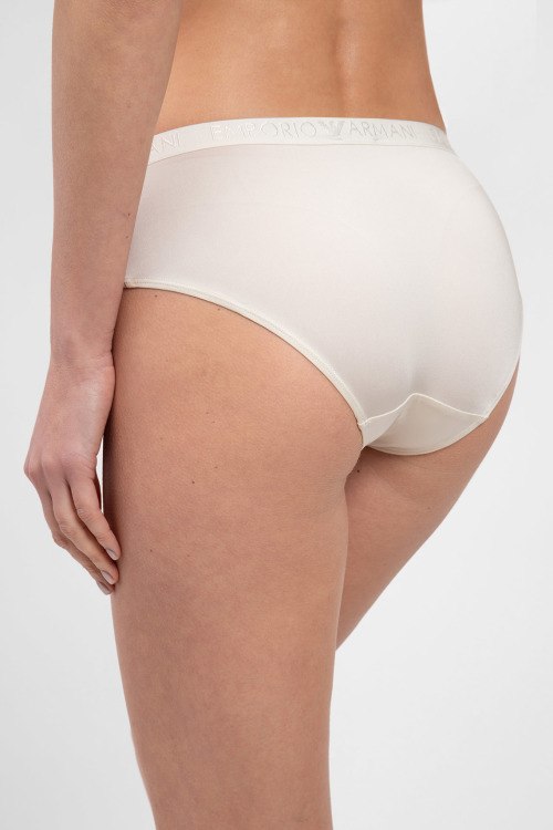 Женские трусики молочного оттенка из полиамида и эластана от EA7 Emporio Armani (ЕА7 Эмпорио Армани). Средняя посадка, эластичная резинка на поясе, модель слипы.