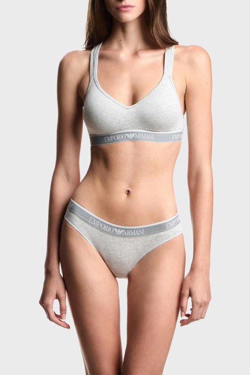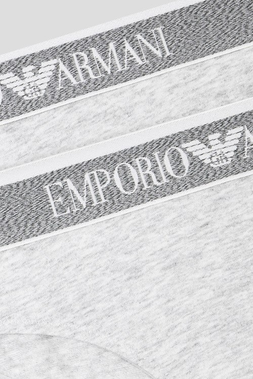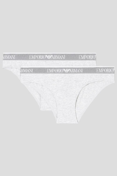 Детали: Женский комплект светло-серых хлопковых трусиков от Emporio Armani (Эмпорио Армани). Фасон-слипы, эластичный брендированный пояс. В комплекте 2 пары