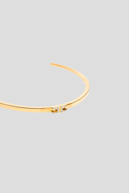 Детали: Женское золотистое колье-чокер от Elisabetta Franchi (Елизабетта Франчи). Жесткое колье-чокер из золотистого металла с логотипом из стразов по центру. Длина: 0,5 см