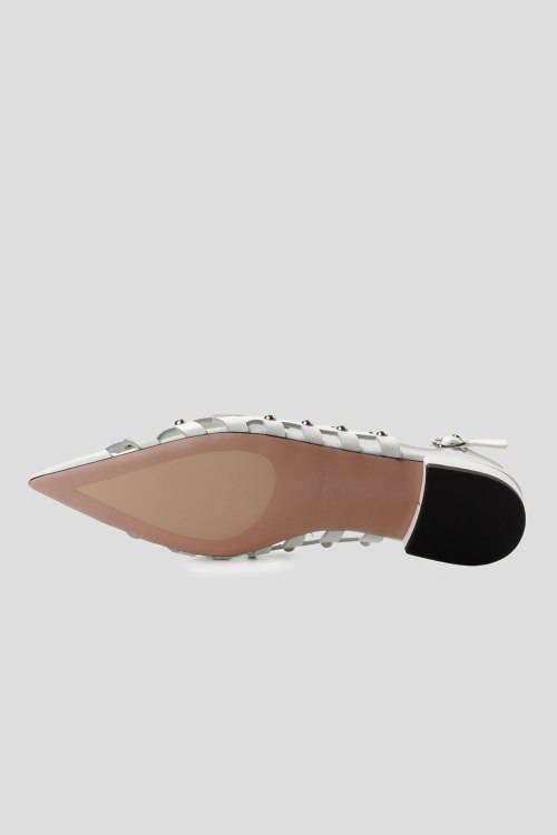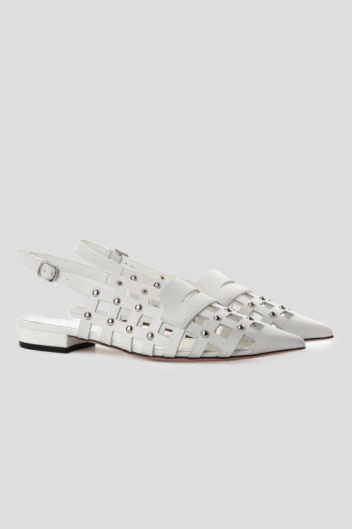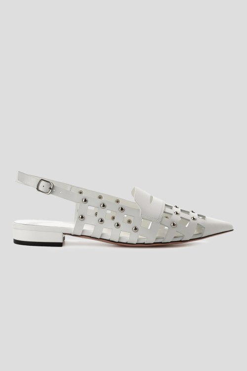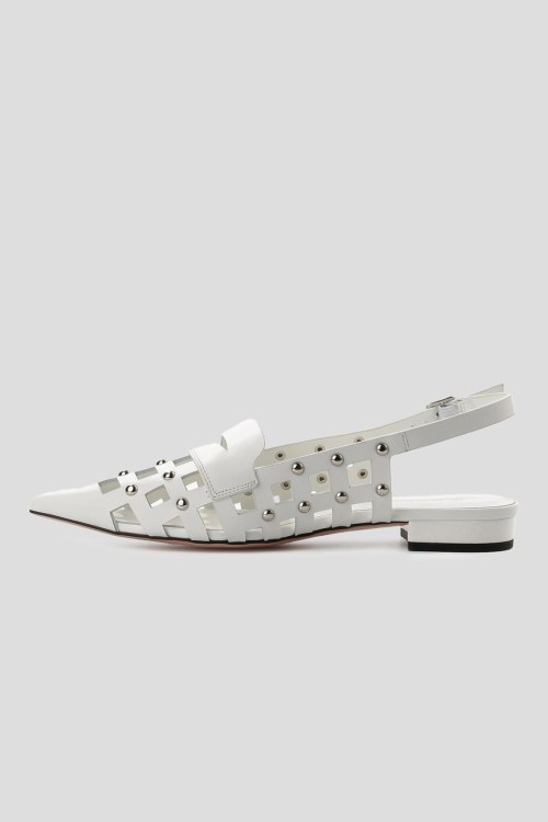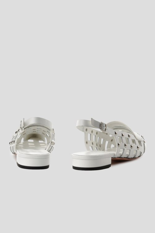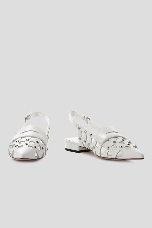 Детали: Женские белые кожаные слингбэки от Le Berdes (Ле Бердес). Модель из гладкой кожи с вырезами, декор серебристыми заклепками, узкий носок, ремешок с пряжкой на пятке. Высота каблука: 2 см. Замеры: длина стельки: размер 35 (23 см), 36 (23,5 см), 37 (24 см), 38 (24,5 см), 39 (25 см),40 (25,5)