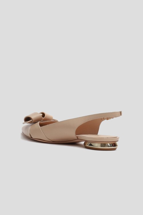 Детали: Женские бежевые слингбэки из кожи от Dyva (Дива). Острый носок, спереди объемный бант с металлической вставкой, кожаная стелька с логотипом бренда. застежка на тонкий регулируемый ремешок, маленький каблук с металлической вставкой. Измерения: высота каблука: 1,5 см (на размер 37)
