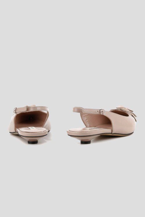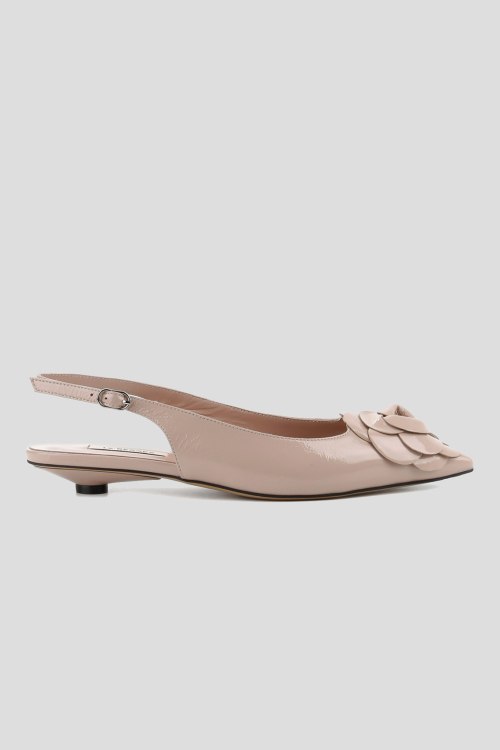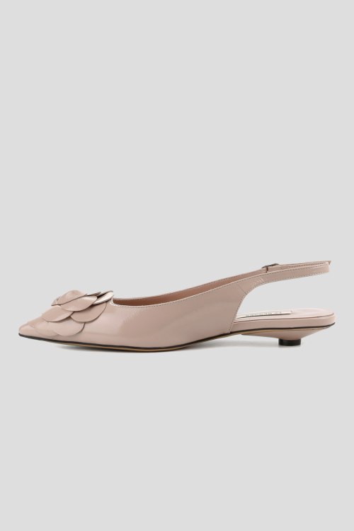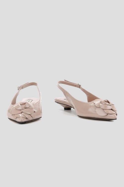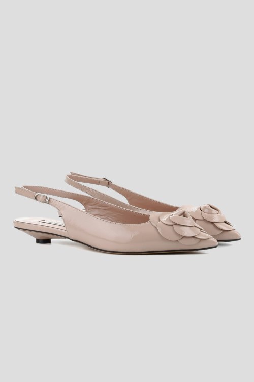 Детали: Женские бежевые лаковые слингбэки от Le Berdes (Ле Бердес). Глянцевый эффект, узкий носок декорирован цветком, ремешок с пряжкой на пятке, кожаная стелька. Замеры: длина стельки: размер 35 (23 см), 36 (23,5 см), 37 (24 см), 38 (24,5 см), 39 (25 см),40 (25,5)