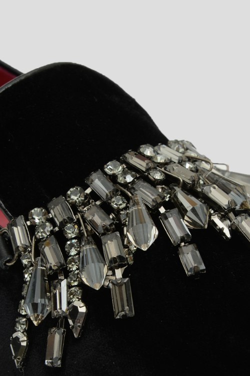 Детали: Туфли из велюра. Однотонная модель, закругленный носок, небольшой каблук. Дополнены нашивкой с камнями