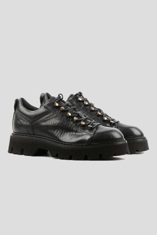 Детали: Женские черные туфли из натуральной кожи от Fru.It (Фру.Ит). Закругленный носок, спереди классическая шнуровка с металлической фурнитурой, тракторная подошва, кожаная стелька, петля для подтягивания