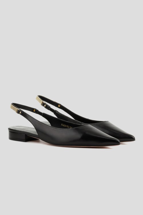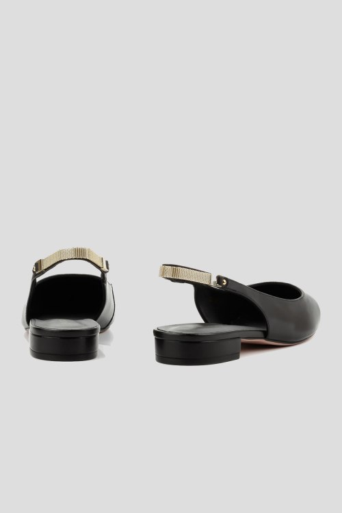Детали: Женские черные кожаные слингбэки от Le Berdes (Ле Бердес). Модель из гладкой кожи, узкий носок, ремешок на пятке с золотистой фурнитурой. Высота каблука: 2 см. Замеры: длина стельки: размер 35 (23 см), 36 (23,5 см), 37 (24 см), 38 (24,5 см), 39 (25 см),40 (25,5)